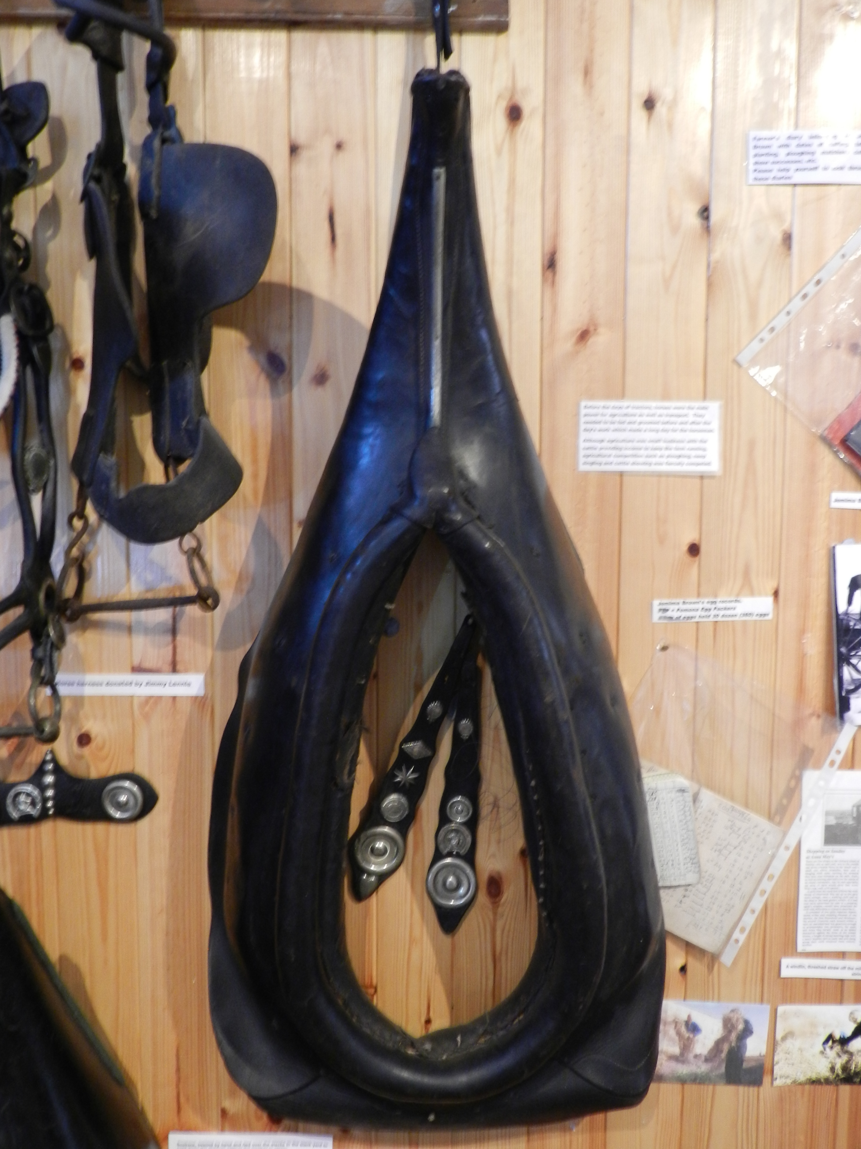 This is one of a pair of horse collar harnesses which is on display at the Heritage Centre.