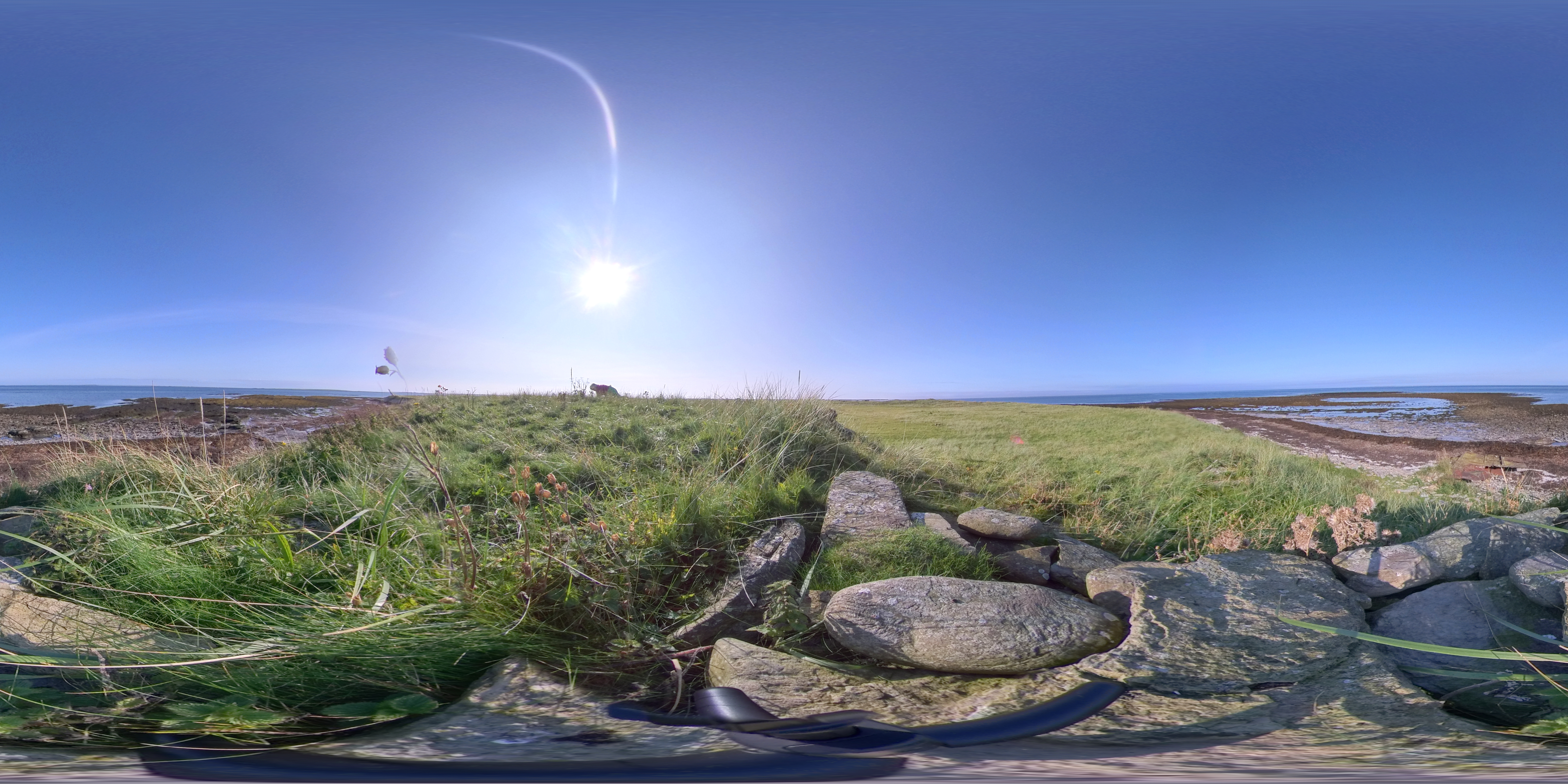 This image was taken on top of the ruined cairn at Whitemill Point showing part of the wreck the ‘Wanga’ which came ashore in 1939. The stretch of water is the North Ronaldsay Firth with a glimpse of North Ronaldsay on the horizon.